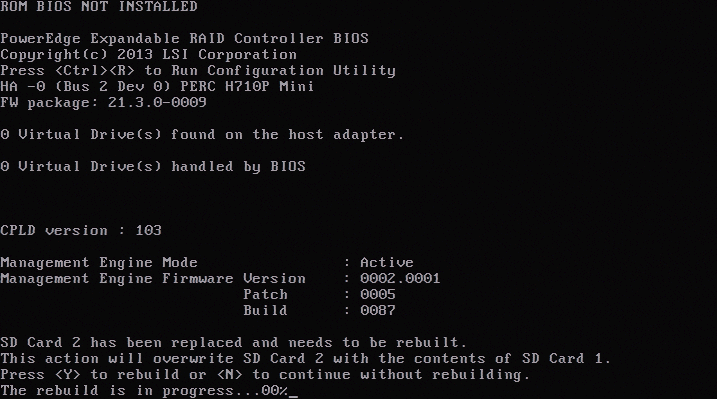Error with the Dell IDSDM. This was due a faulty SD module.