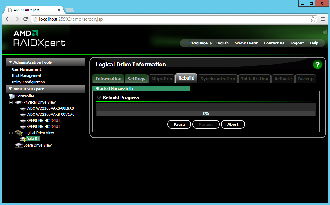 The RAID rebuild process starts… This process takes a long time, actually days!