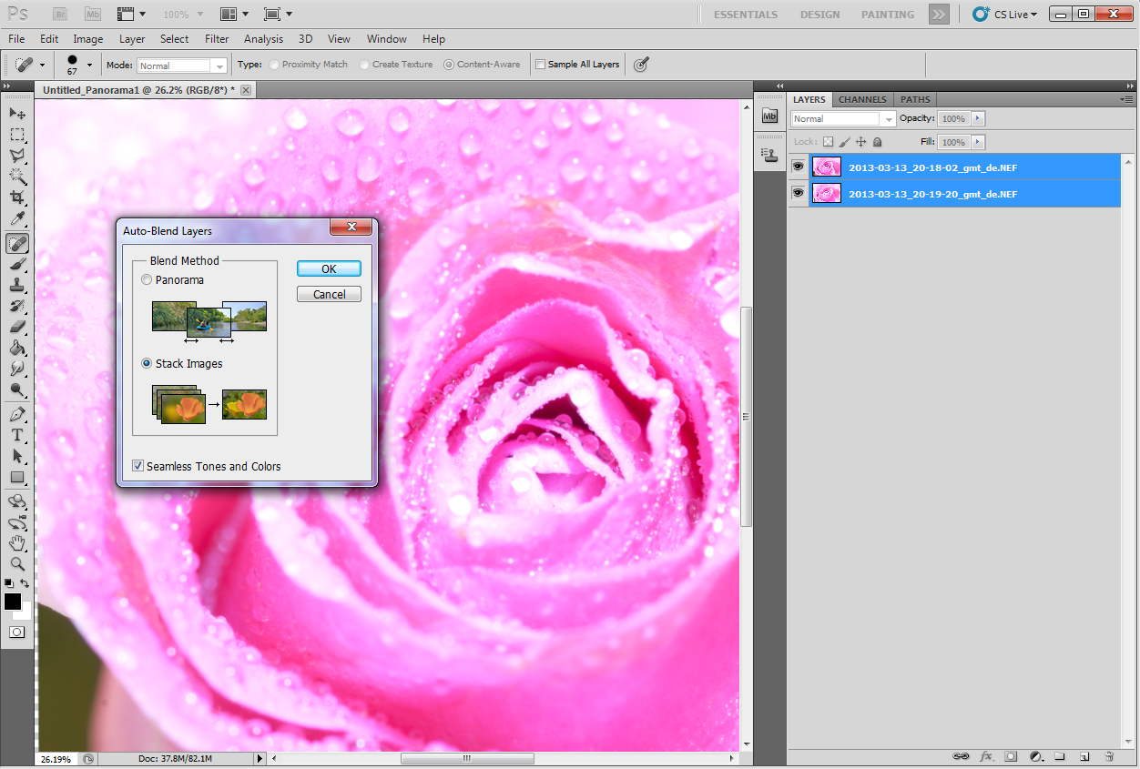 Edit -> Autoblend Layers -> Select “Stack Images”