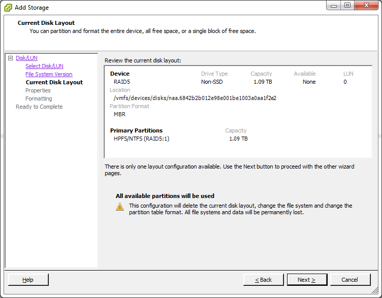 Call “HostStorageSystem.ComputeDiskPartitionInfo” for object “storageSystem” on ESXi “172.16.233.55” failed.