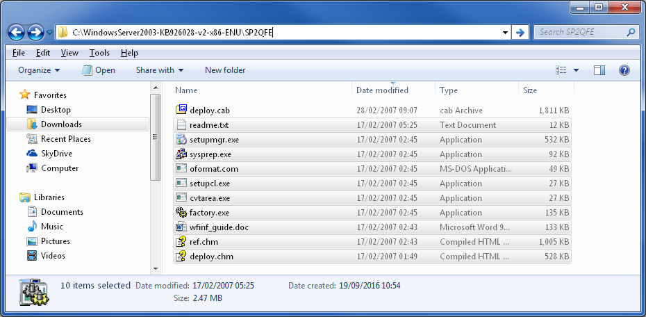 - Extract the contents (Using the /x switch will prompt for extract location) | “C:\WindowsServer2003-KB926028-v2-x86-ENU.exe /x”
