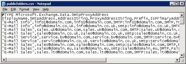 Get-MailPublicFolder | Select-Object DisplayName -expand emailaddresses| Export-CSV $FilePath